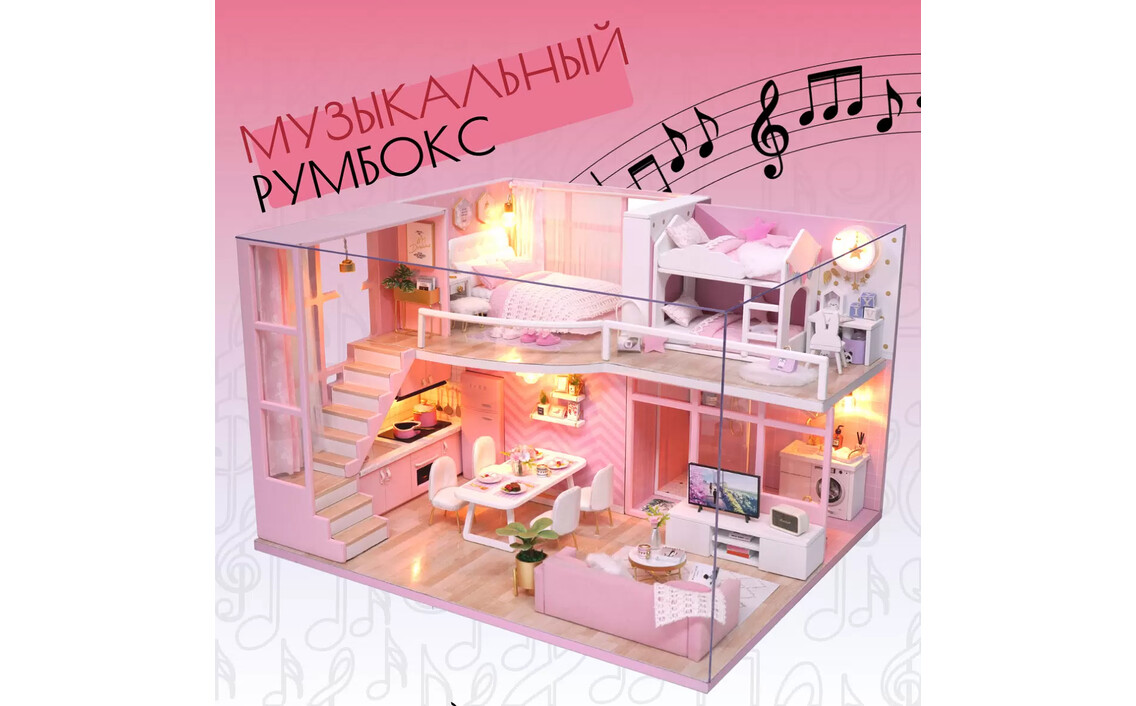 Миниатюрная сборная модель (румбокс) HitTOY «Музыкальная комната», с куполом и подсветкойСер. номер: M026