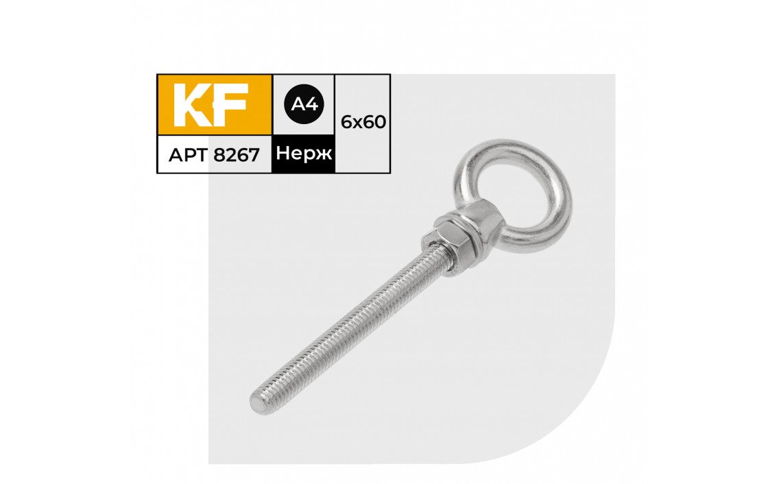 Рым-болт Нержавеющий KREPFIELD М6Х60 ART 8267 А4 1 штСер. номер: 8267А4РЫМБОЛТМ6X60-1