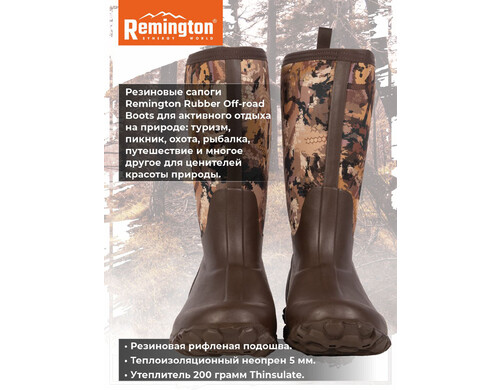 Сапоги Remington Rubber Boots Camo Timber, КоричневыйСер. номер: RF2605OJTYR37-991