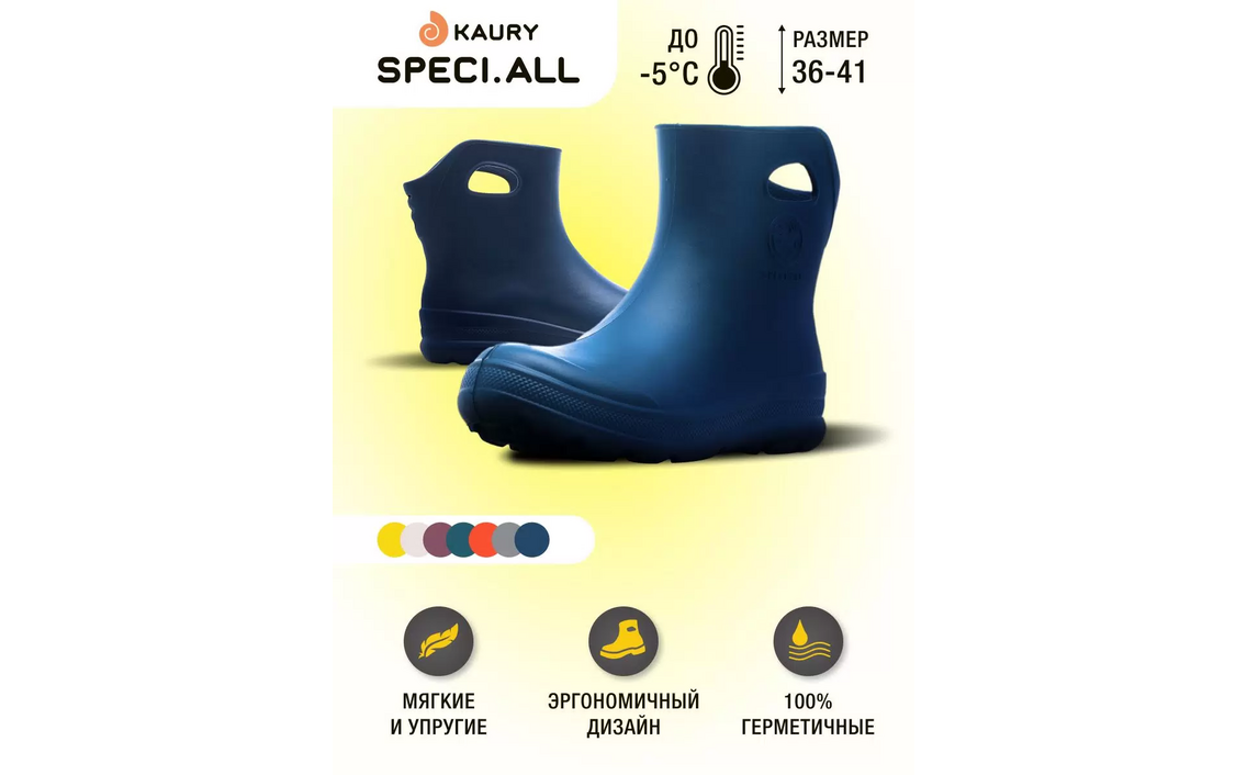 Резиновые полусапоги женские Kaury 869 синие 36-37 RUСер. номер: 869_темно-синий_36-37