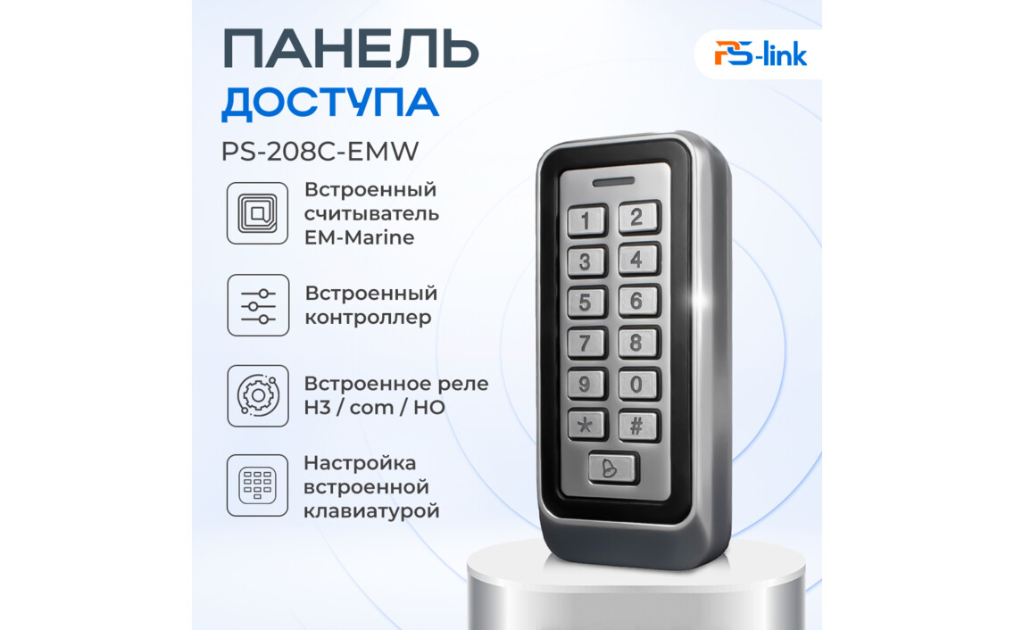 Панель доступа Ps-Link PS-208C-EMW с защитой корпуса IP67 и кнопочной клавиатуройСер. номер: 1080267
