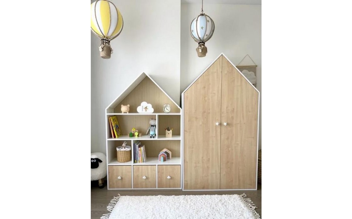 Шкаф двухсекционный Polini kids Porto 3100 с 1 ящиком белый-дуб крафтСер. номер: 9556496