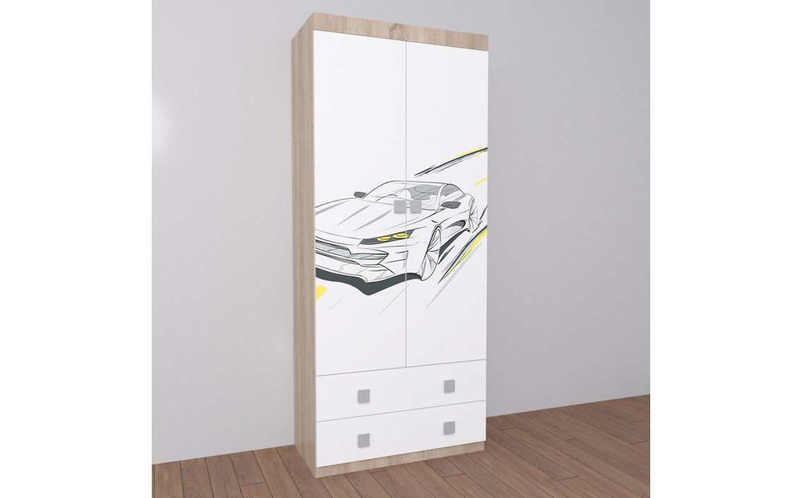 Шкаф 2-х створчатый с ящиками ВДК Формула ЛДСП белый, фотопечать, 800х420х1900Сер. номер: Д13