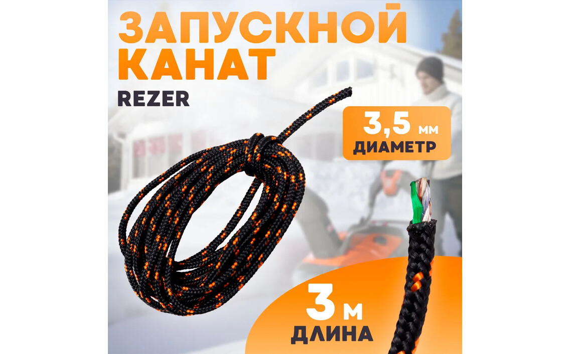 Шнур стартера канат запускной Rezer 3,5 мм длина 3 метра 03.011.00005-3Сер. номер: 03.011.00005-3