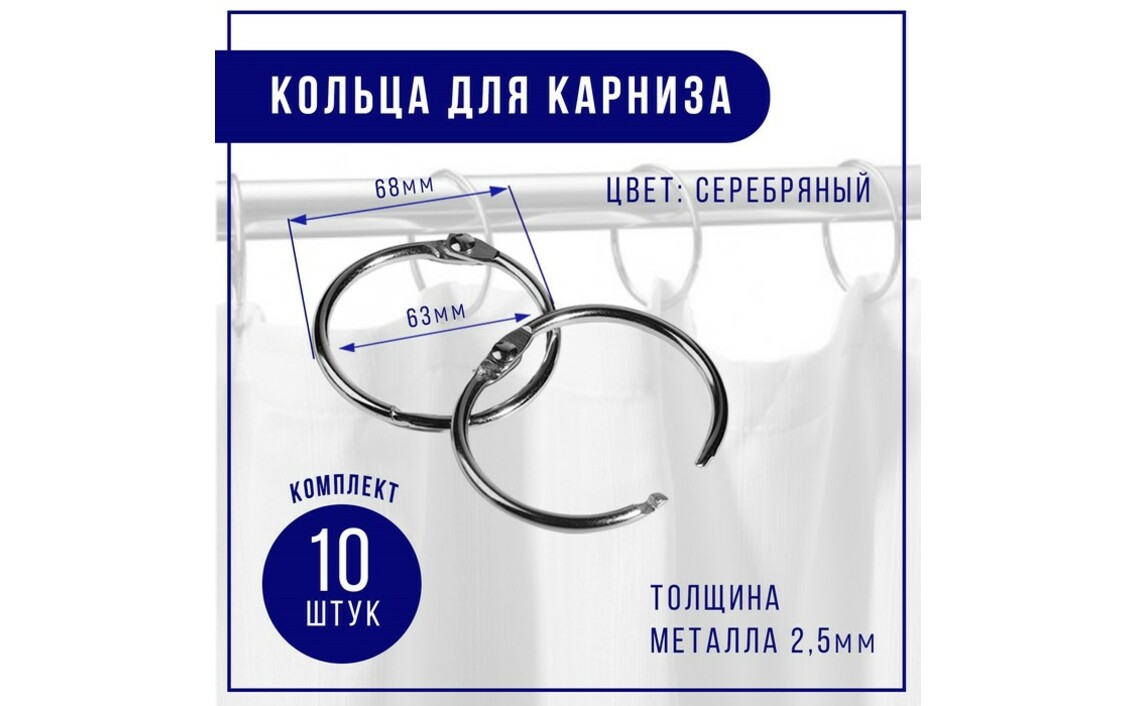 Кольца для штор металлические с крючками для карнизов D16 белый 10 штСер. номер: ТК2125520