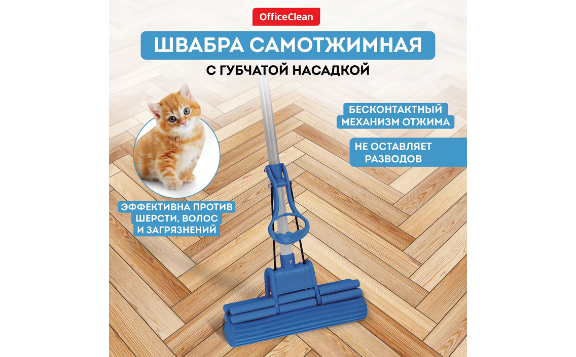 Швабра самоотжимная OfficeClean Professional ПВА 27см двойной отжим телеск.ручка 70-125смСер. номер: 303055