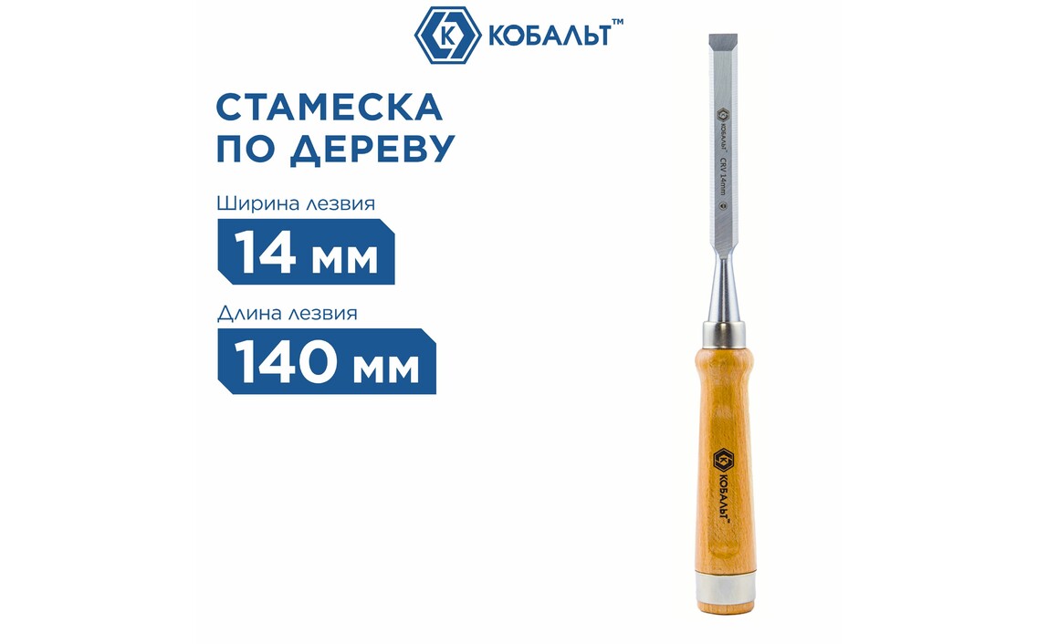 Стамеска плоская КОБАЛЬТ 14 х 140 мм CR-V деревянная рукоятка 1 шт.Сер. номер: 245-749