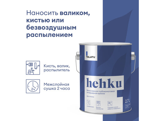 Краска белоснежная Talatu Глубокоматовая Hehku 2,7 л
