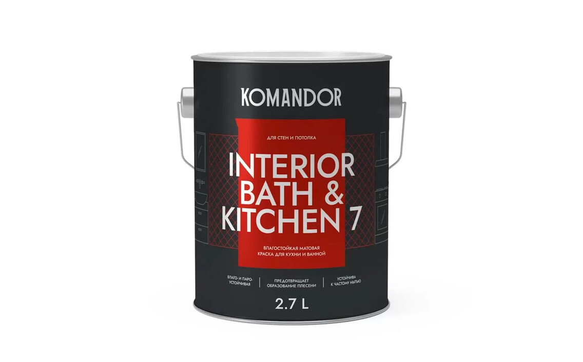 Краска влагостойкая матовая Komandor 7 База A 2,7 л