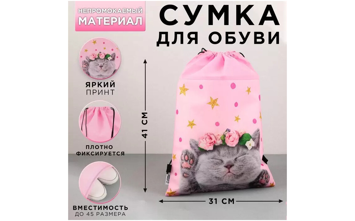 Сумка для обуви «Очаровательный котёнок», нетканное полотно, размер 41х31 смСер. номер: 9442004