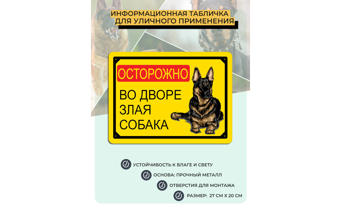 Табличка Мастерская ОКЗнак Осторожно Злая собака 4, металл, 27 см х 20 смСер. номер: tbudog-4-27х20