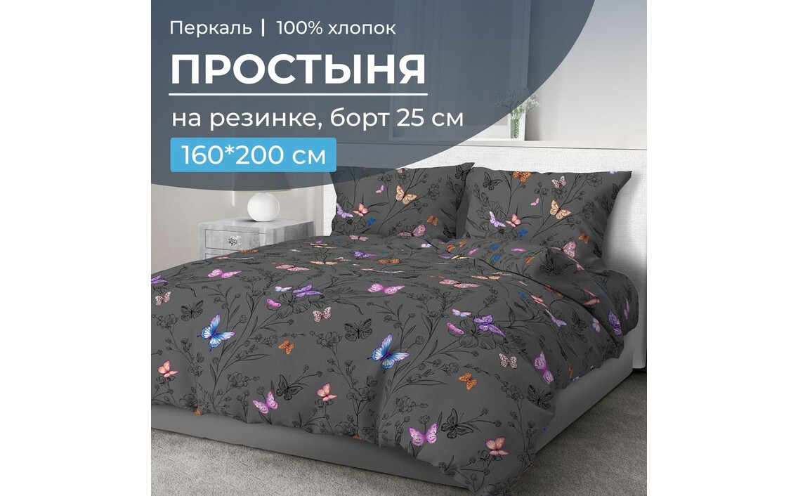 Простыня Ивановотекстиль 99448 на резинке 160х200 см перкаль РоссанаСер. номер: 99448