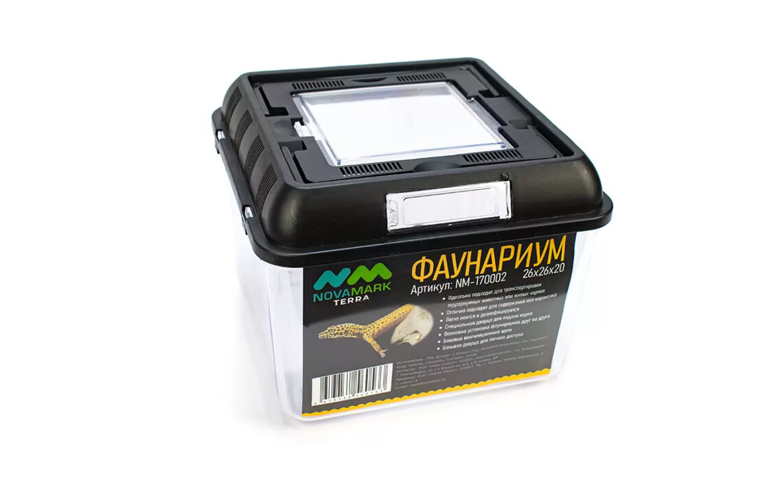 Террариум-фаунариум Novamark черный, пластик, с окошками для кормления 26х26х20 смСер. номер: NM-170002