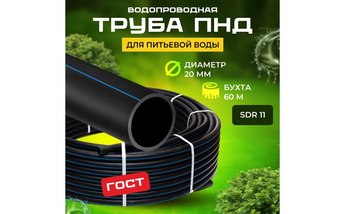 Труба ПНД водопроводная питьевая, для скважины диаметр 20 мм длина 60 м 8741474304Сер. номер: 8741474304