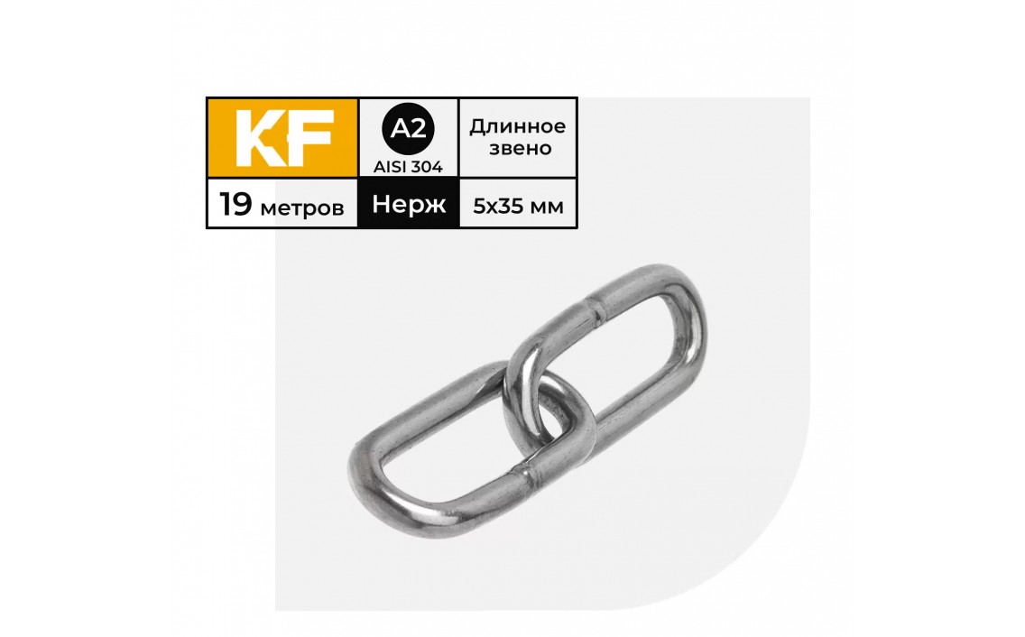 Цепь нержавеющая KREPFIELD 5х35 мм DIN 763 А2 сварная длиннозвенная 19 метровСер. номер: 763А2ЦЕПЬ5ММ-19