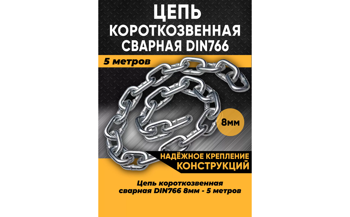 Цепь нержавеющая KREPFIELD 8х52 мм DIN 763 А2 сварная длиннозвенная 8 метровСер. номер: 763А2ЦЕПЬ8ММ-8