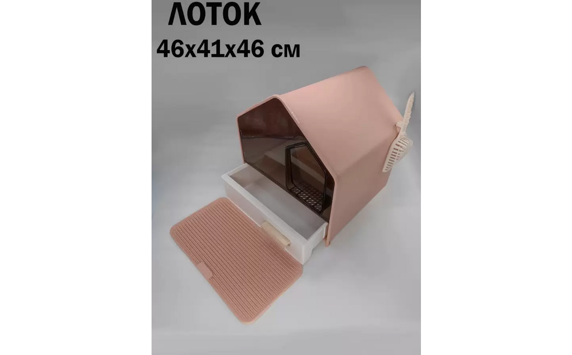 Туалет-домик для кошек Чистый котик, выдвижной поддон, совок, розовый, пластик 46x41x46 смСер. номер: MSP-1107