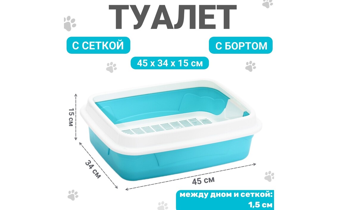Туалет с бортом и сеткой белый, бирюзовый пластик 45х34х15 смСер. номер: 10575507