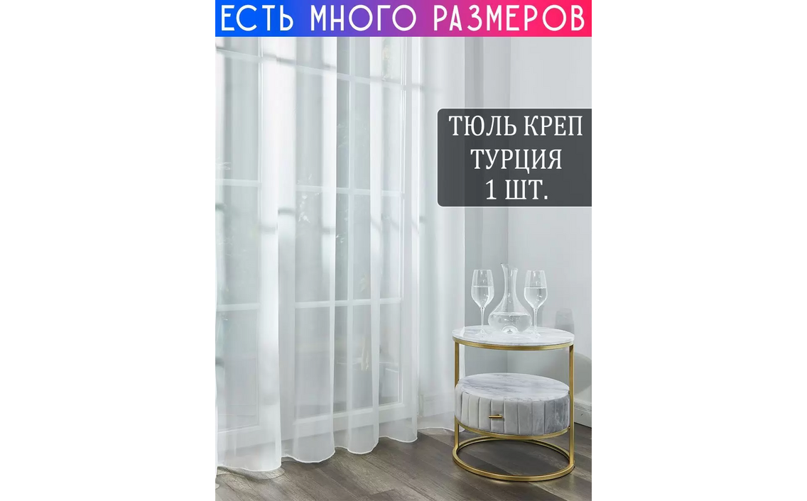 Тюль A&H Шторы и Тюль креп с утяжелителем 500x260 см 1 штСер. номер: KREP_500x260_v55