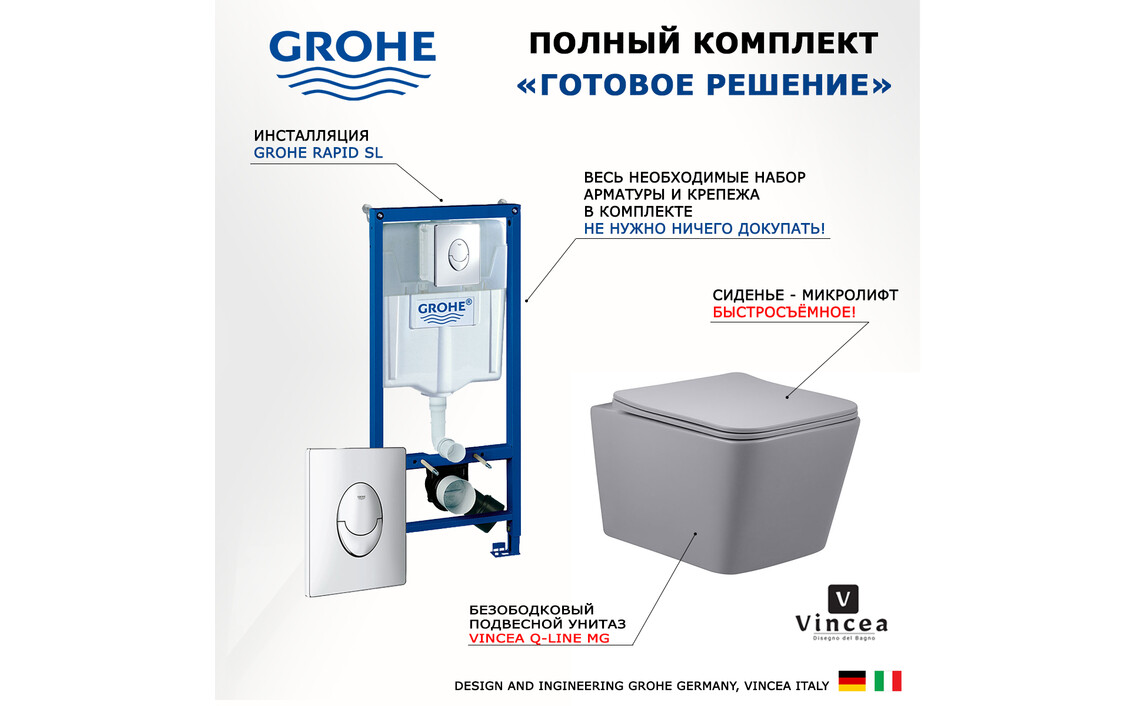 Комплект инсталляции GROHE Essence с унитазом и сиденьем с микролифтом (NW0125)Сер. номер: NW0125