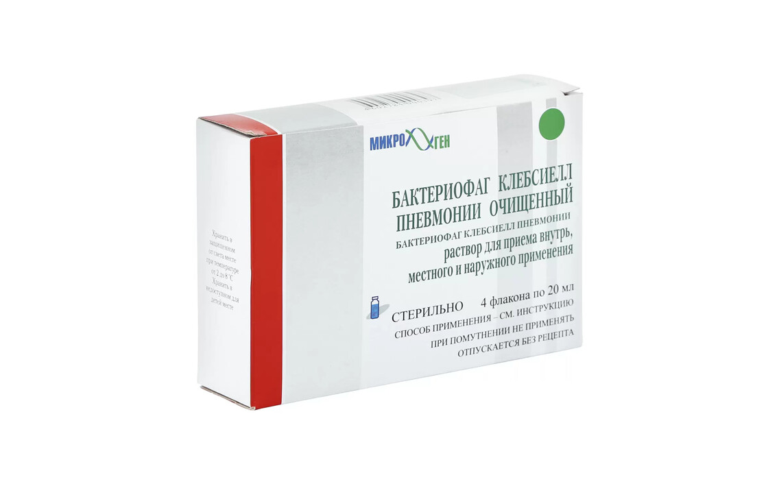 Бактериофаг клебсиелл пневмонии очищенный жидкий раствор 20 мл 4 шт.Сер. номер: 49670