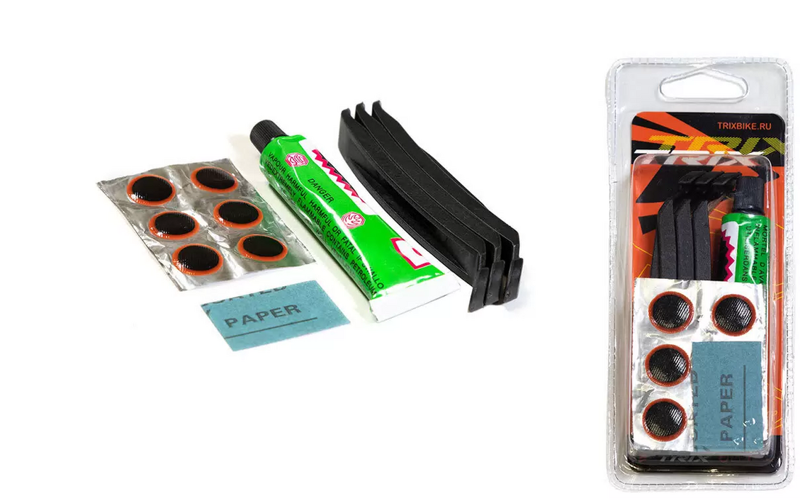 Аптечка TRIX, клей 10 мл, заплатки: D15мм-6 шт., наждачка-1 шт, монтажки-1 комплект (10/30Сер. номер: V00000006970