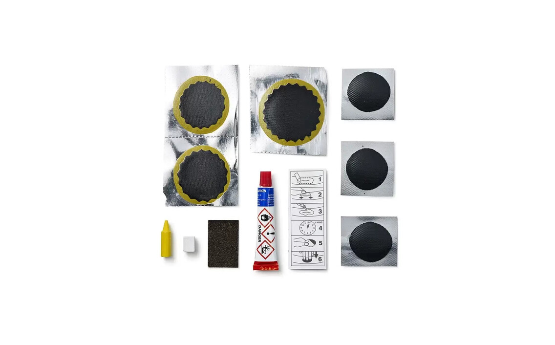 Аптечка для ремонта велосипедныхкамер M-WAVE 7 заплаток,клей, терка, монтировкиСер. номер: 051074