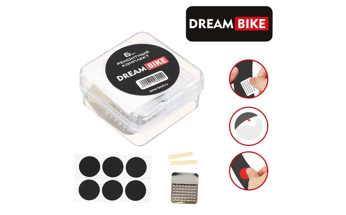 Аптечка велосипедная Dream Bike 6 заплаток. самоклейка. пластиковый боксСер. номер: Р00017732