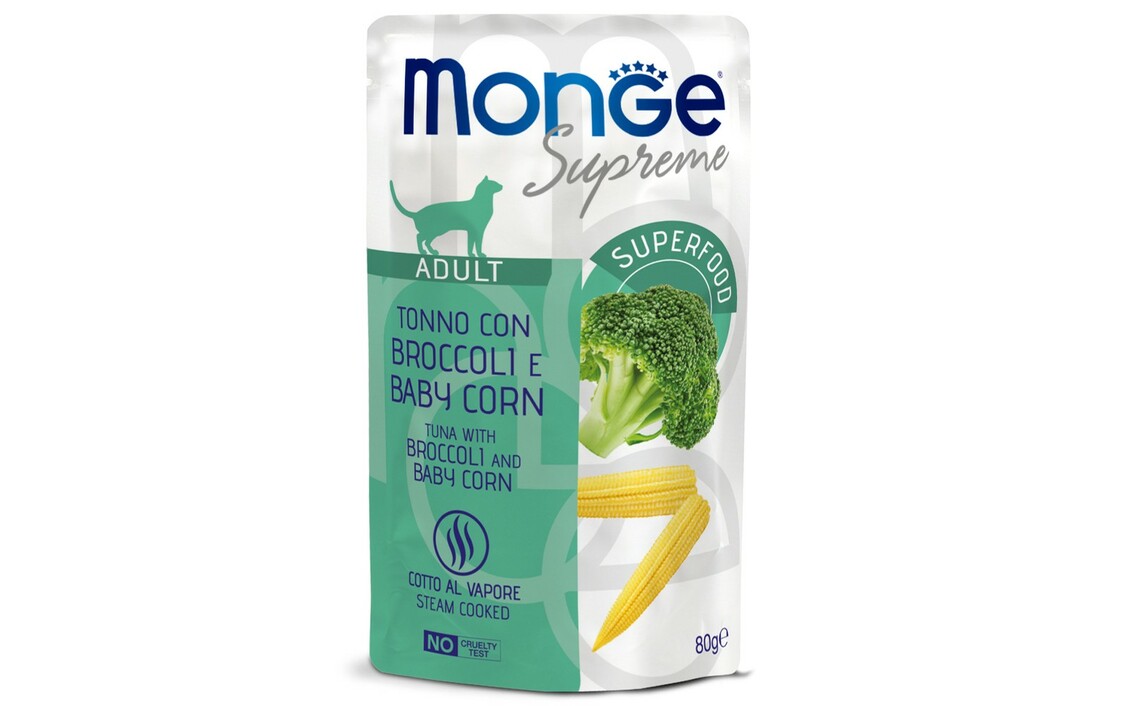 Корм для кошек Monge Supreme Pouch тунец с брокколи и мини-кукурузой пауч 80гСер. номер: 9796391354896010426