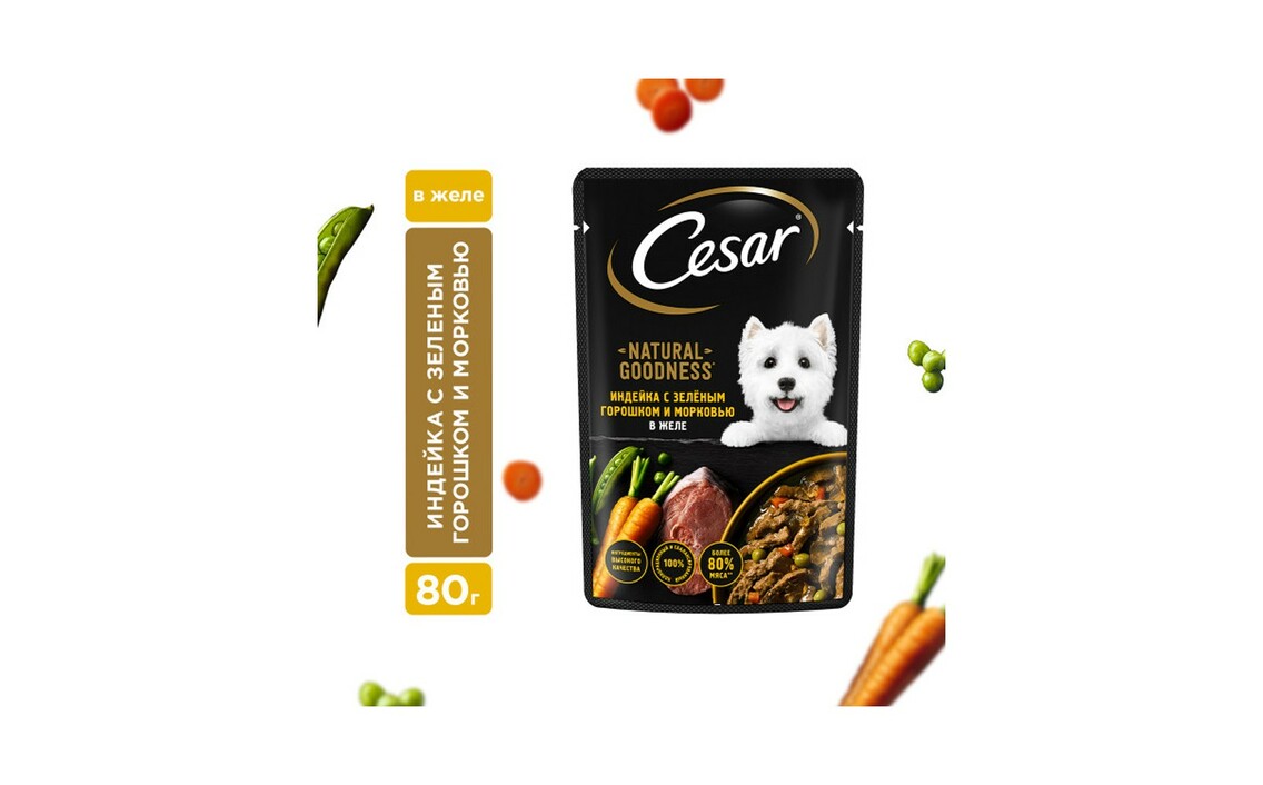 Корм для собак Cesar индейка с горохом и морковью в желе пауч 80гСер. номер: 5684546345394648478