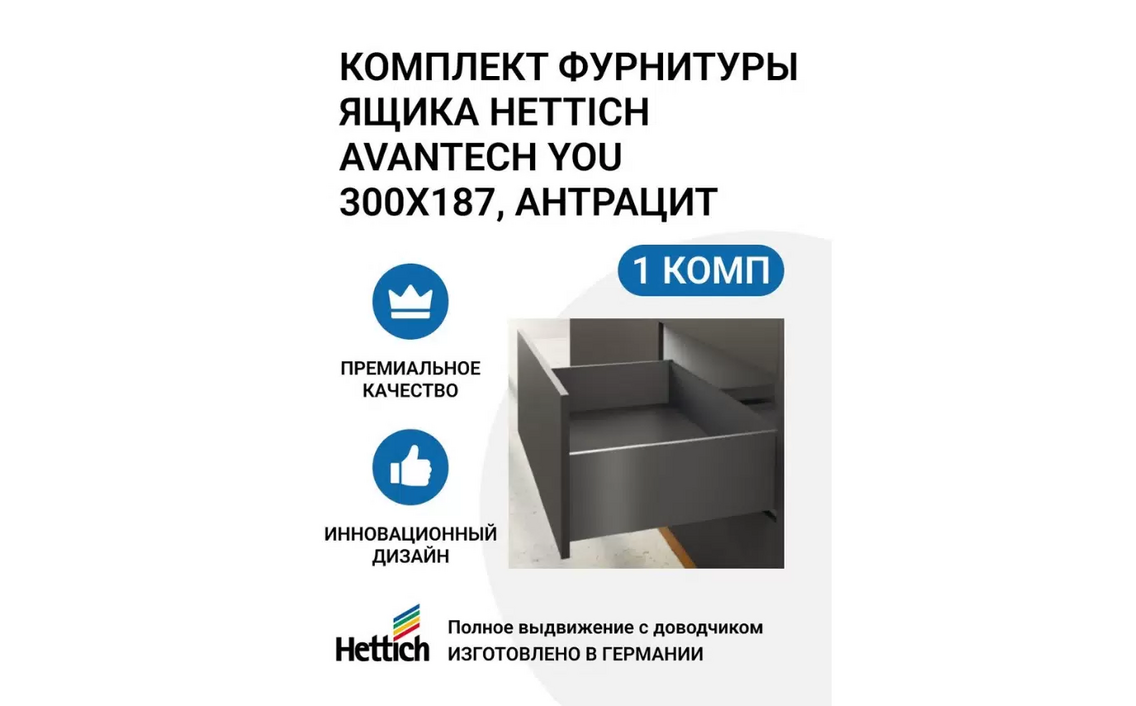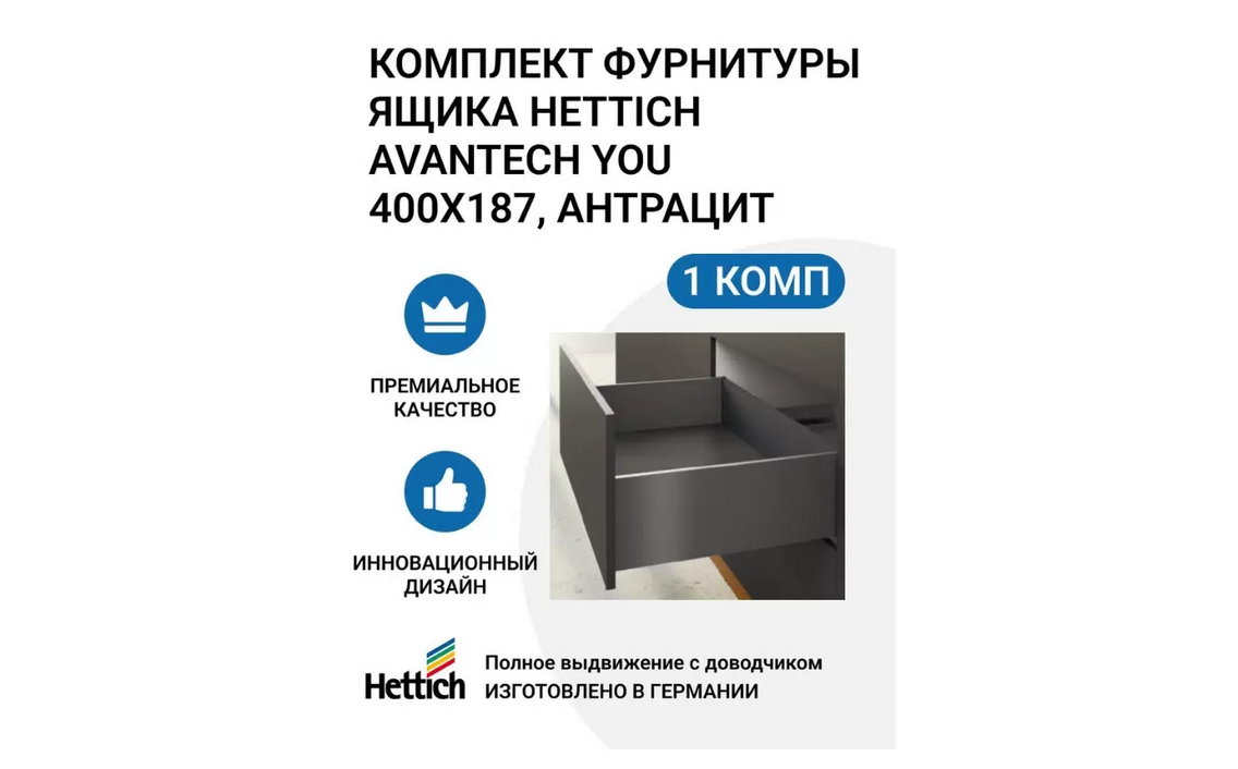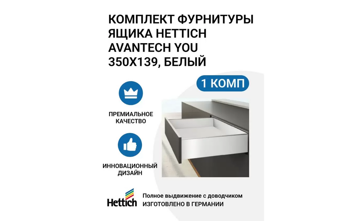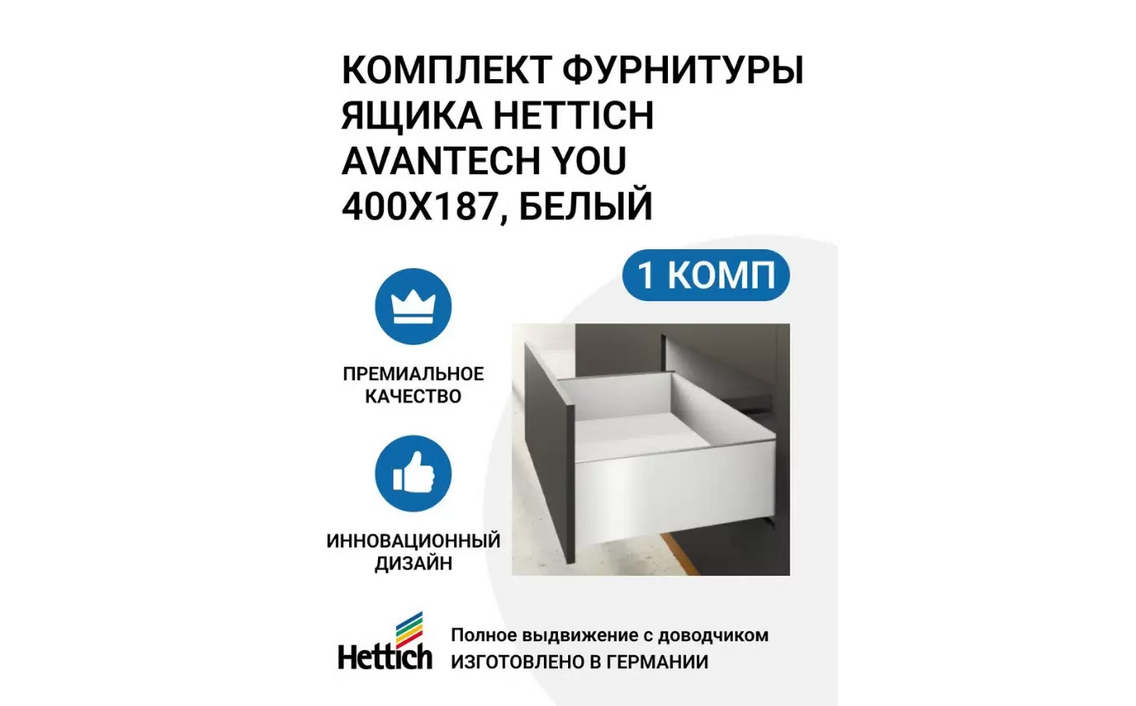 Комплект фурнитуры ящика HETTICH AvanTech YOU полного выдвижения с Silent SystemСер. номер: MP00601