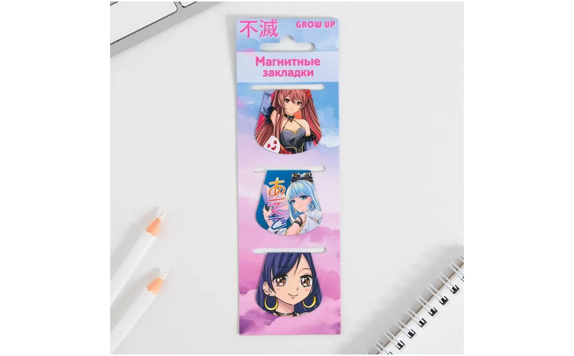 Магнитные закладки на подложке для книг «Аниме. Девочки», 3 шт.Сер. номер: 9580202