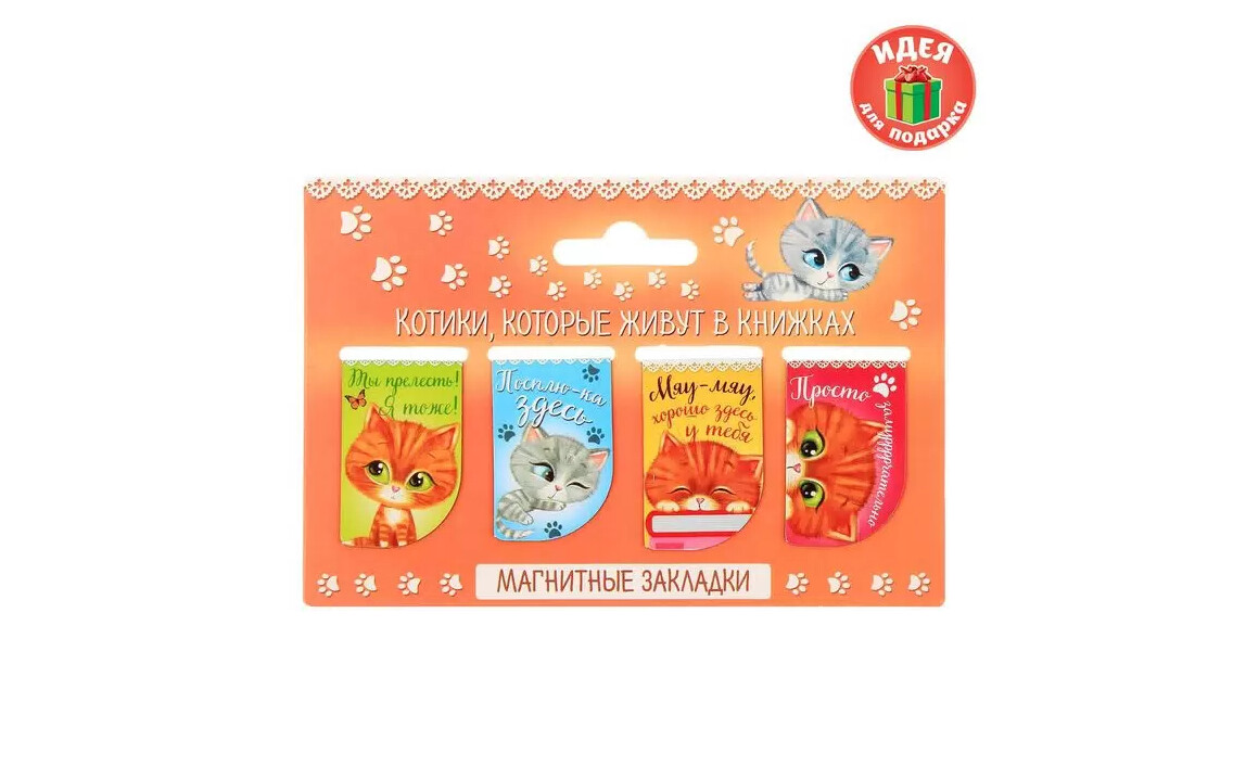 Набор магнитных закладок "Котики, которые живут в книжках", 4 шт., (2шт.)Сер. номер: 1944226